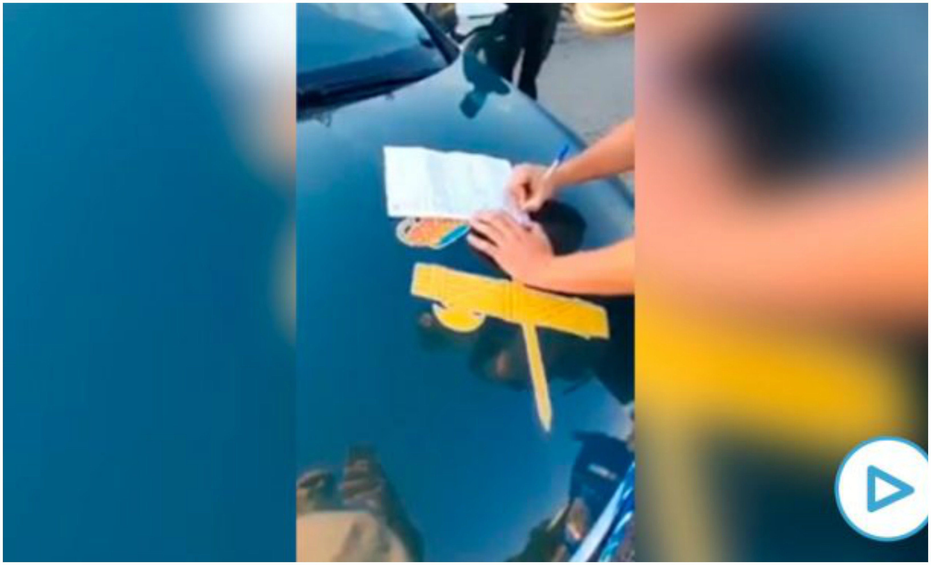 En este vídeo de OK Diario se observa como los agentes de la Guardia Civil le ponen una multa a un ciudadano que trata de explicar lo que estaba haciendo: algo tan peligroso como, según cuenta en sus alegaciones in situ, «subirse a una roca situada a unos 10 metros de la casa para tararear el himno de la Guardia Civil». Los agentes apuntan las puntualizaciones hechas por el ciudadano y le entregan una copia del documento, después de que este ejerza su derecho a no firmarlo.