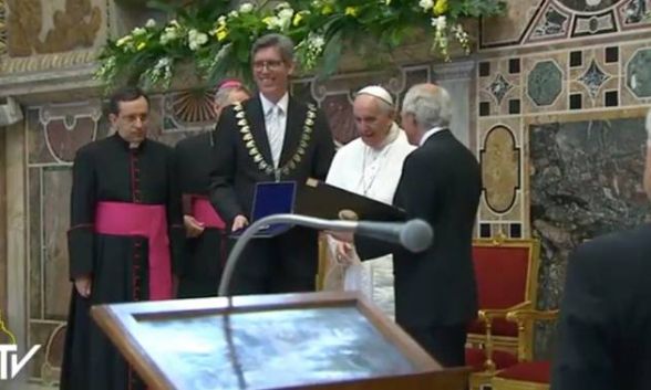Sueño con una Europa donde ser inmigrante no sea un delito, aseguró el Papa Francisco al recibir el Premio Carlomagno en Roma, con el monarca español, Felipe VI de cuerpo presente.Premio concedido por su espíritu de tolerancia, solidaridad e integridad, según la UE. Es decir, tres virtudes que poco tienen que ver con el papado. Del papado no es la tolerancia sino el respeto a la persona; tampoco es la solidaridad, sino la caridad, que conlleva entrega; nada de integristas, autenticidad y sinceridad que son cuestiones más profundas. Cuidado con los halagos, Santidad.Construir puentes y destruir muros, aseguró Francisco ante unos líderes que se han especializado en levantar alambradas. La verdad, no sé por qué le aplauden tanto los líderes europeos cuando les estaba poniendo como no digan dueñas.Recuperar los valores de la dignidad y solidaridad que están en la fundación del Papa.Pero la pregunta clave llegó después: "Europa ¿qué te ha sucedido?", preguntó el Pontífice. Una Europa de mano tendida al prójimo ha terminado en el actual vocerío de mercado.¿Por qué? Por el otro grito, el de Juan Pablo II en Santiago de Compostela. Europa sé tú misma, recupera tus raíces cristianas.Hispanidadredaccion@hispanidad.com