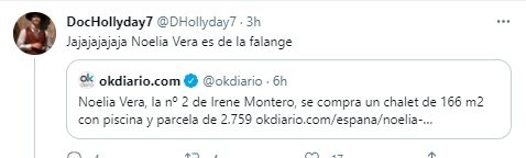 La número dos de Podemos, Noelia Vera, secretaria de Estado de Igualdad y contra la Violencia de Género, se ha comprado un chalet de 166 metros cuadrados en la localidad madrileña de Fresnadillas, en la Sierra Oeste de la Comunidad. Vivirá muy cerca de Irene y Pablo, a unos 30 minutos en coche.