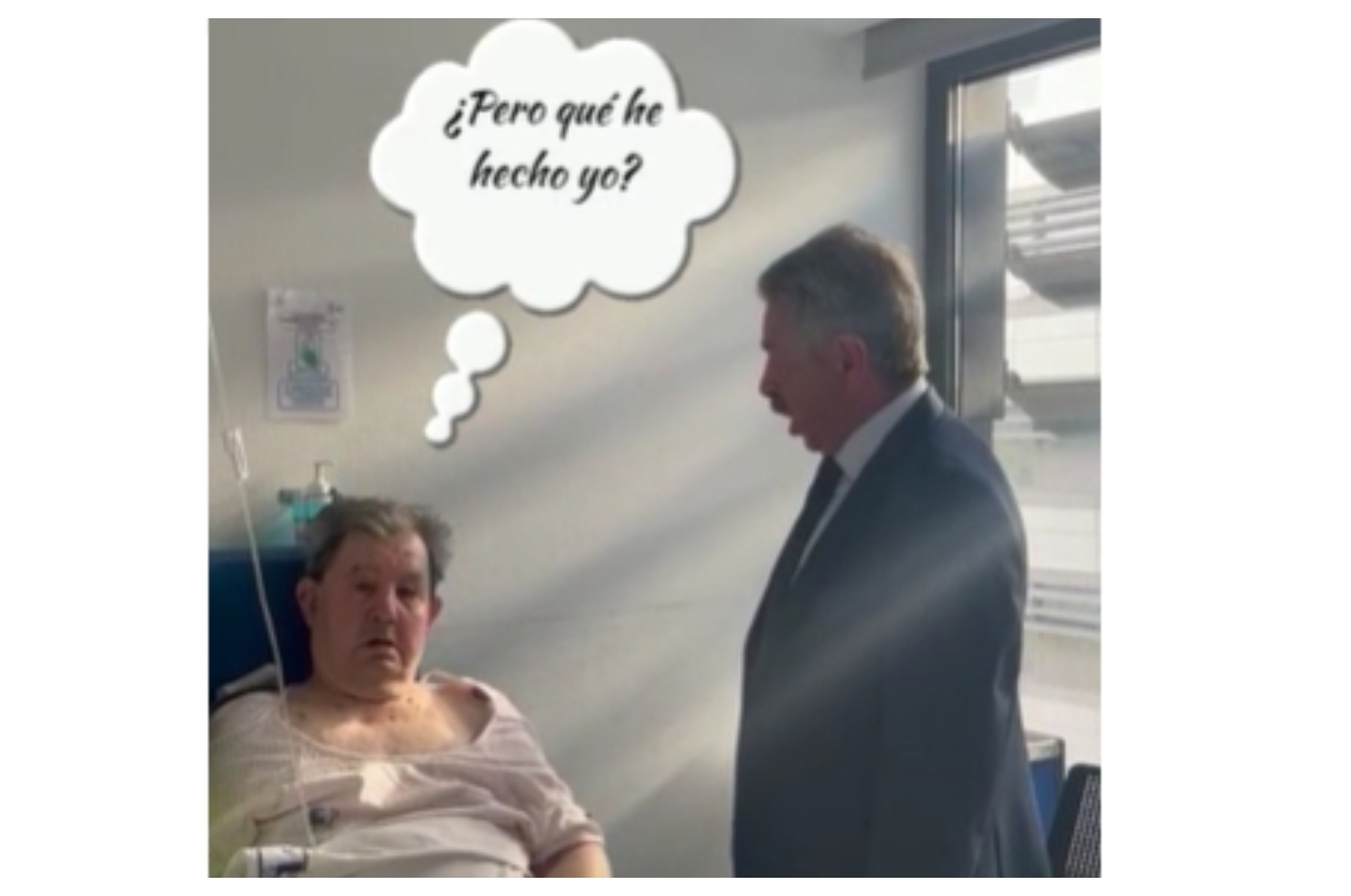 El vídeo se ha hecho viral. Miguel Ángel Revilla ha decidido que las canciones montañesas curan más que la medicina tradicional y así deleita a los pacientes cántabros con 'Adiós pueblo de Carmona'.