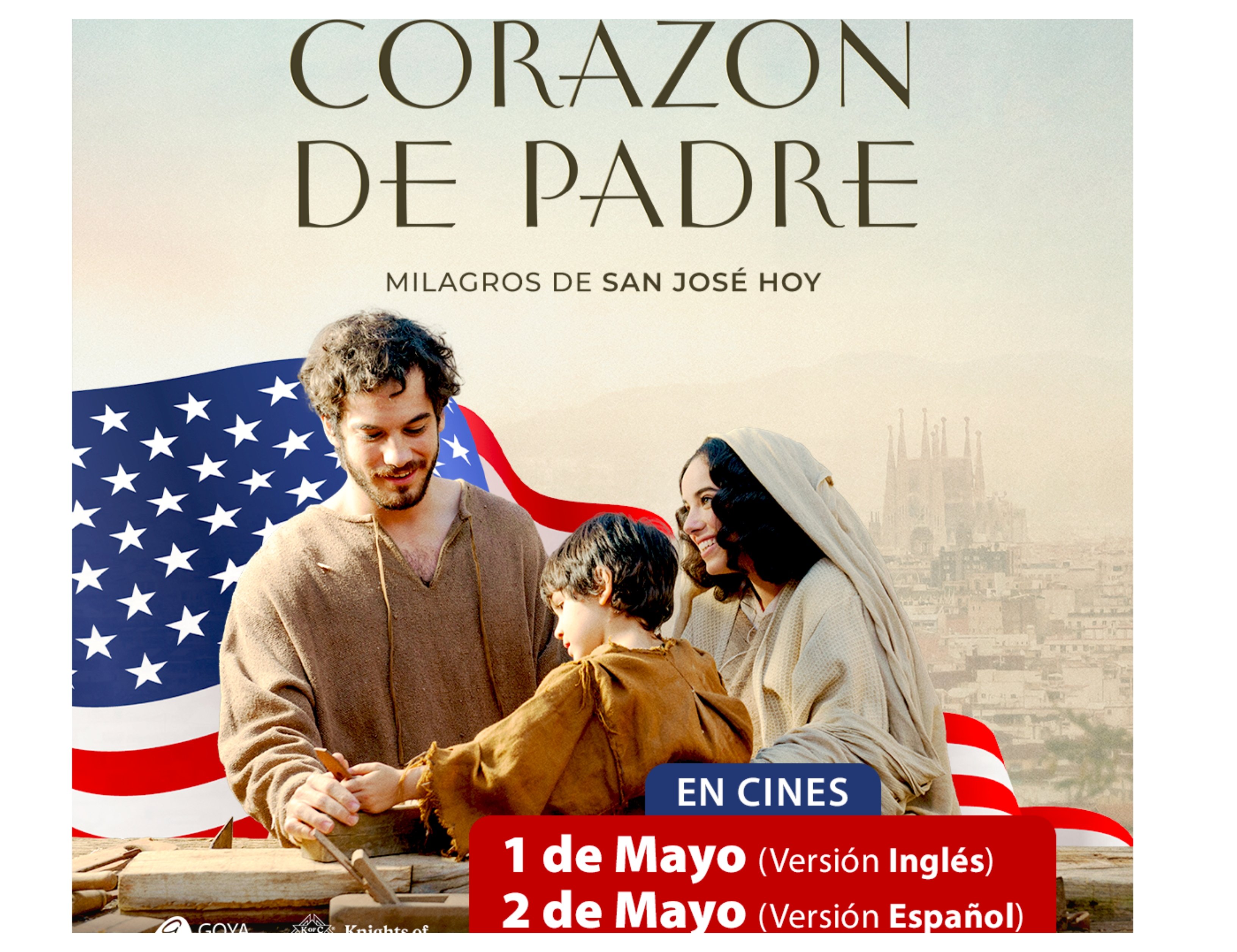 Goya Producciones y Fathom Events presentan los asombrosos milagros realizados en nuestros tiempos por San José, el hombre conocido como el padre adoptivo de Jesús, en la nueva película “CORAZÓN DE PADRE”, que llega a los cines de Estados Unidos SÓLO DURANTE 2 DÍAS: el 1 y 2 de mayo de 2023.