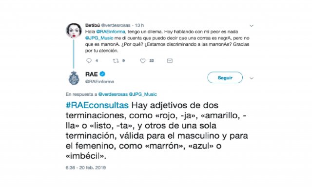 — RAE (@RAEinforma) 20 de febrero de 2019