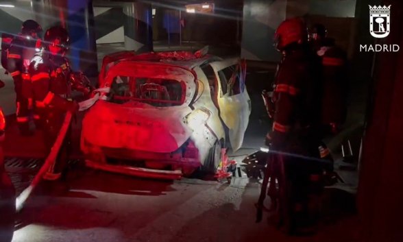 La penúltima muestra de un incendio de un coche eléctrico se ha visto en Madrid, en concreto, en el parking de la plaza de Colón... Y han sido necesarias 10 dotaciones de bomberos para apagarlo.