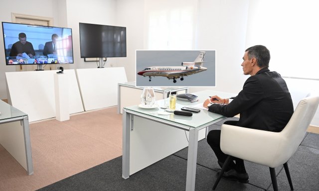 Sánchez se dirigía a París en Falcon para acudir a la reunión de la Coalición de Voluntarios por Ucrania que se celebraba en París (Francia). Al final, la avería se lo ha impedido... y ha tenido que participar de forma telemática, al igual que otros muchos líderes, según ha destacado RTVE (¡cómo no!), entre ellos: Donald Trump, Keir Starmer, Giorgia Meloni y Luís Montenegro, así como el secretario general de la OTAN, Mark Rutte.