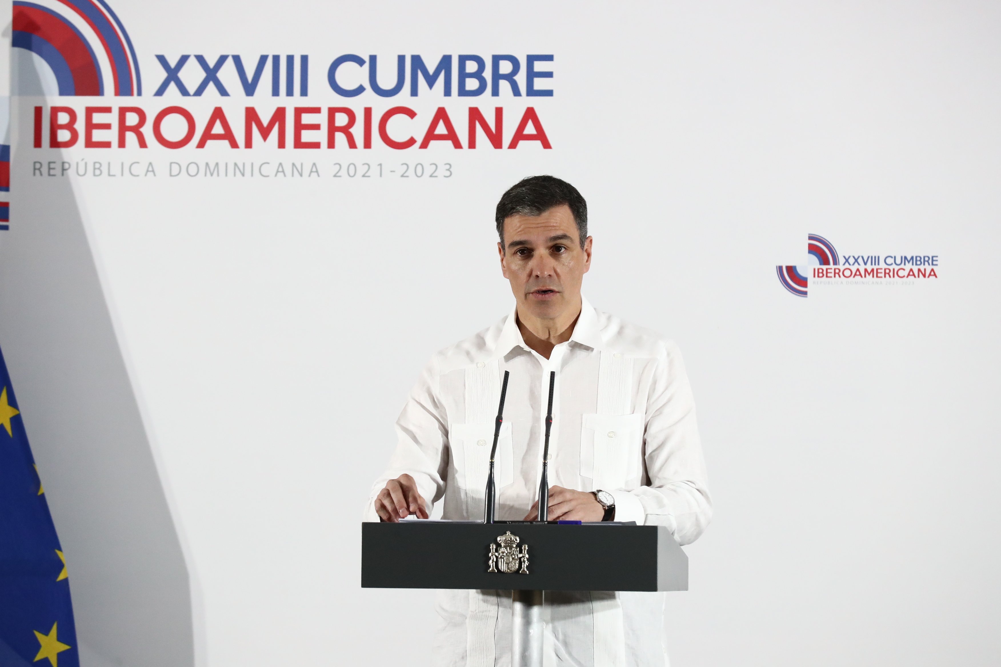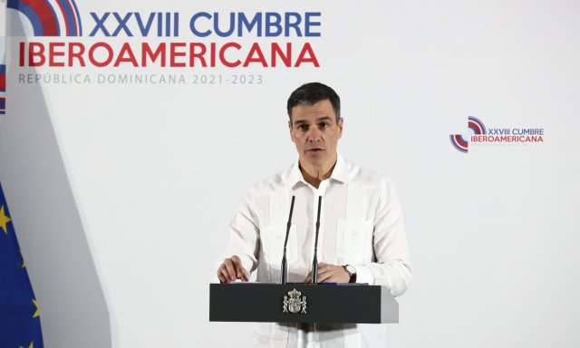 El presidente del Gobierno habla de una Iberoamérica justa, inclusiva y feminista, a lo que RTVE añade 'sostenible', porque en la noticia sobre Pedro Sánchez en la Cumbre se les había olvidado este gesto.