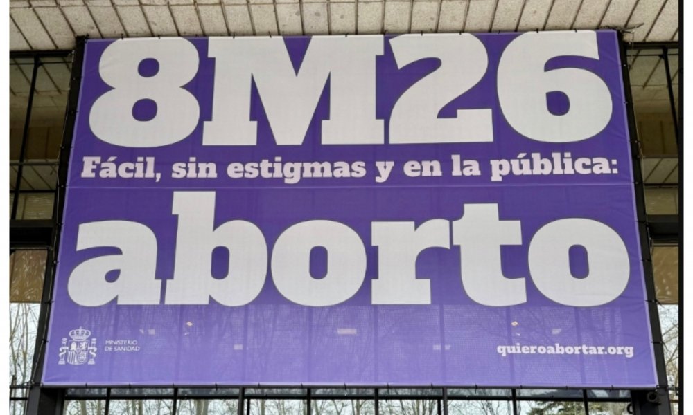Repugnante cartel de la ministra de Sanidad, Mónica García, pero muy ilustrativo: el feminismo no es más que aborto