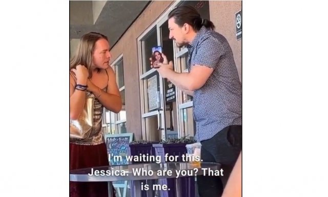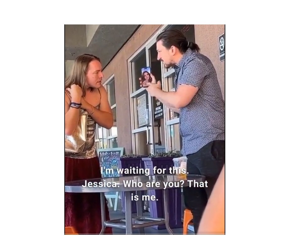 El hombre del siguiente vídeo había quedado con Jessica, la chica de la foto que llevaba en su móvil. Pero, se encontró con Jason, quien se empeñaba en asegurarle a su cita que era la mujer de la foto. La discusión entre ambos mantuvo entretenida a la pareja que les grabó quien iba comentando la peculiar escena. El hombre le decía a 'Jessica' que no era la chica de la foto, que si sabía lo que parecía, que era un hombre y que no tenía nada que ver con la chica de la foto. Mientras, 'Jessica' se afanaba en asegurar que era una mujer, que era maravillosa, que su cita le estaba discriminando y que había tenido que conducir 30 minutos para encontrarse con él y al final, para nada.
