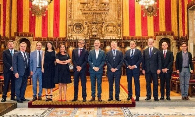 ver instantánea: Malet es el sexto por la izquierda) que la Cámara americana celebre los 100 años de la institución en España entre tantísima bandera que,