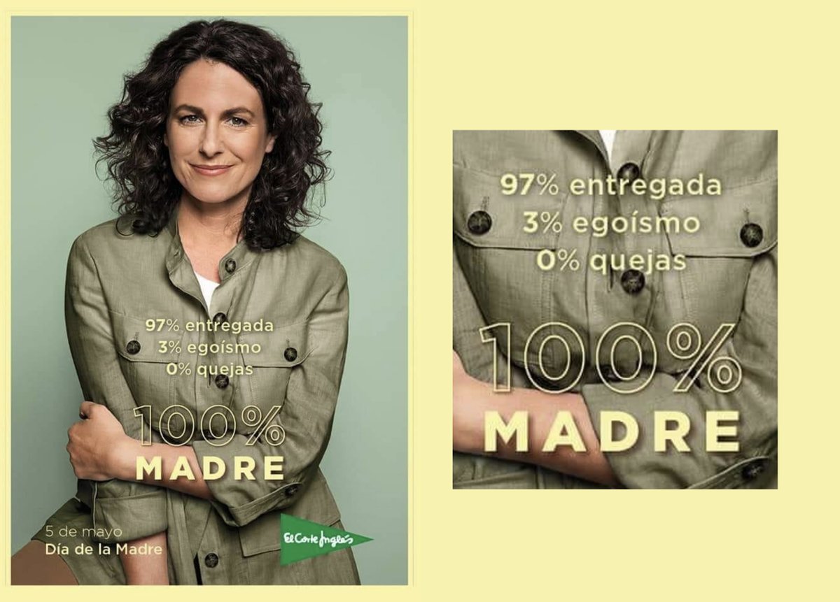 Pues bien, Compromís es feminista y a las feministas no les gusta ni la virginidad ni la maternidad. Para el día de la madre, El Corte Inglés lanzó el cartel que puede verse en la imagen. Resulta que labor de entrega de la mujer madre, esa actitud de servicio, les ha sentado mal a los chicos de Compromís y han atacado a El Corte Inglés.