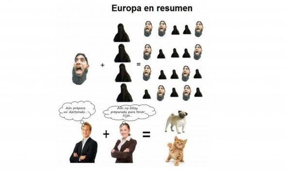 Como toda meme, es una simplificación, pero hay simplificaciones ciertas y falsas. Esta es cierta. Sobre todo en su segunda mitad: no sólo es que las europeas tengan menos hijos. Es que encima los tienen muy mayores y relegan su educación a su ascenso laboral. Y los varones... lo mismo: primero es mi carrera, luego mi familia.
