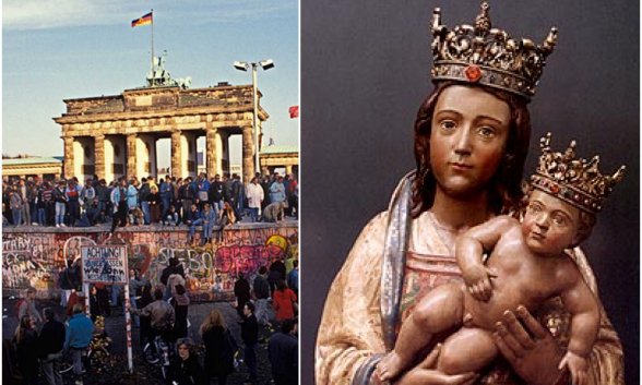 La caída del comunismo era una de las promesas de Nuestra Señora a los videntes de Fátima, Lucía, Jacinta y Francisco. Hasta Juan Pablo II no se cumplieron las condiciones de consagración que la Virgen había solicitado en Fátima… y cinco años después, en 1989, el muro se derrumba y con el régimen comunista, en Europa, una tiranía que para mantenerse en el poder se ha travestido de demócrata y nos han salido, por ejemplo, Nicolás Maduro o Pablo Iglesias.