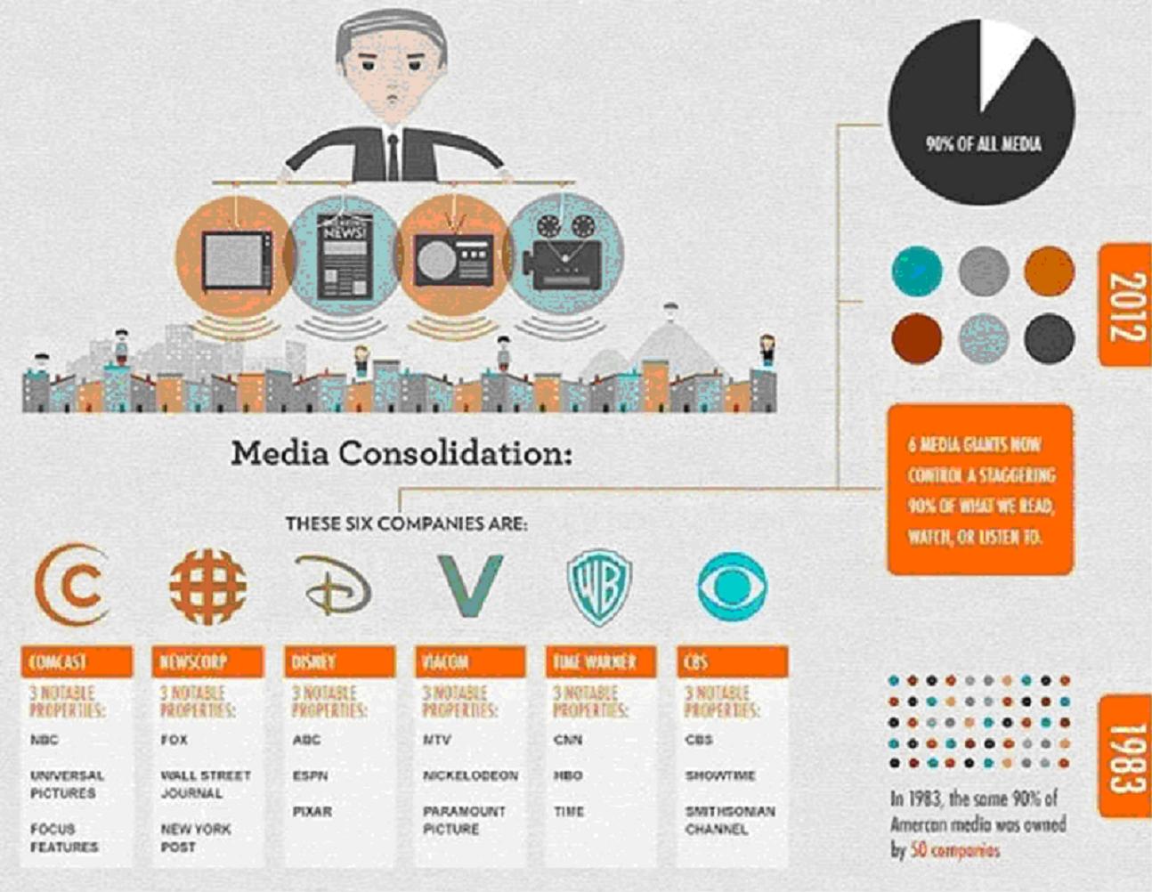 - También en USA, el país de la igualdad de oportunidades, un oligopolio de seis grandes multimedia controla la información.