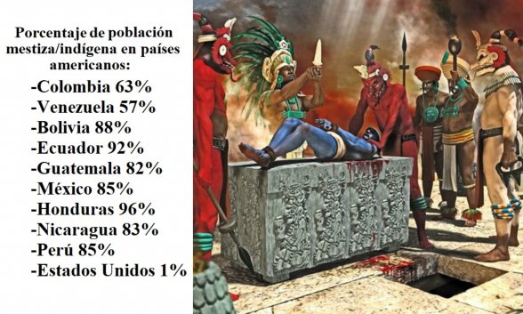 Y no es justo porque esos porcentajes de mestizaje demuestran que España no sólo no hizo algo malo en Hispanoamérica, sino que hizo cosas muy buenas. Llevó allí su fe cristiana, su lengua española y su civilización, a unos salvajes, sí salvajes, que tenían costumbres tan poco higiénicas como los sacrificios humanos.