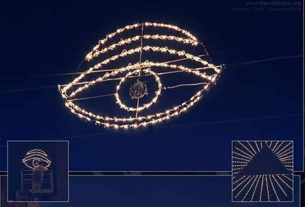 Observen la iluminación navideña de la roja Bolonia, hoy, más que roja masoncilla.