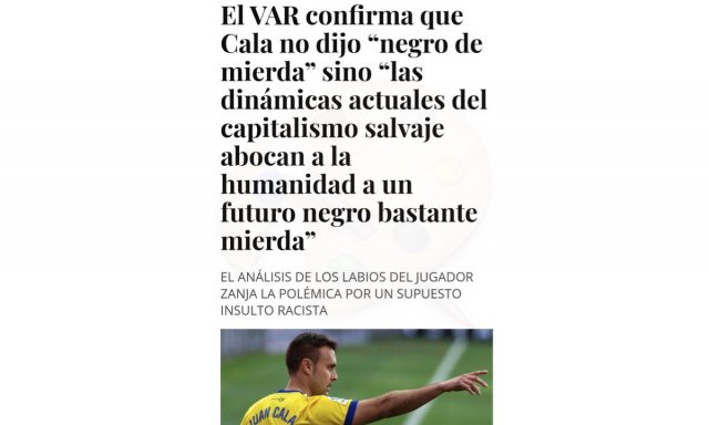 Algo es algo: ya sabemos que fue lo que, según el jugador del Valencia, Mouctar Diakhaby, le llamó el jugador del Cádiz, Juan Cala: “Negro de mierda”. Eso está muy mal Juan, eso no lo dice la gente educada en colegio de pago.
