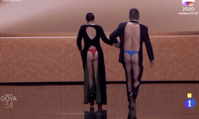 Y la prueba del nueve de todo lo que digo es la propia ceremonia de entrega de Premios con Buenafuente y señora enseñando el trasero, imagen profunda del cine español. La 'señora' Silvia Abril aportó suficientes kilos de vulgaridad a la efeméride escultural. A los tacos e irreverencias añadió un -y cito textualmente-: “olé mi chocho moreno” que tocó el cénit de la vulgaridad. Estos chicos son muy graciosos.