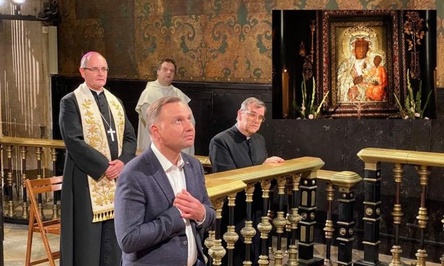 Duda no ha dudado en irse a agradecer su triunfo, al ser reelegido como presidente, a la patrona de Polonia, Nuestra Señora de Jasnagora