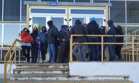 “Les he pedido que respeten mi derecho a ir a clase y me han contestado con que ellos luchan por los derechos colectivos, no por los individuales como el de estudiar”, comenta la alumna después de hablar con los feministas encapuchados y con la cara cubierta.