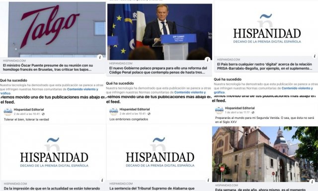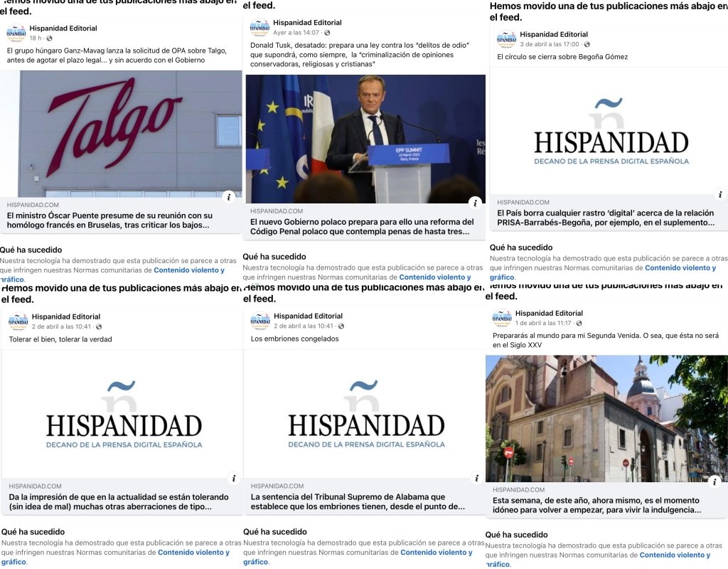 A Facebook, asesorado por Newtral y por Maldita, no le gusta lo que publicamos en Hispanidad, está claro, y en esta semana que termina nos ha censurado hasta seis artículos, enviándolos “más abajo en el feed”, como advierte la red social.