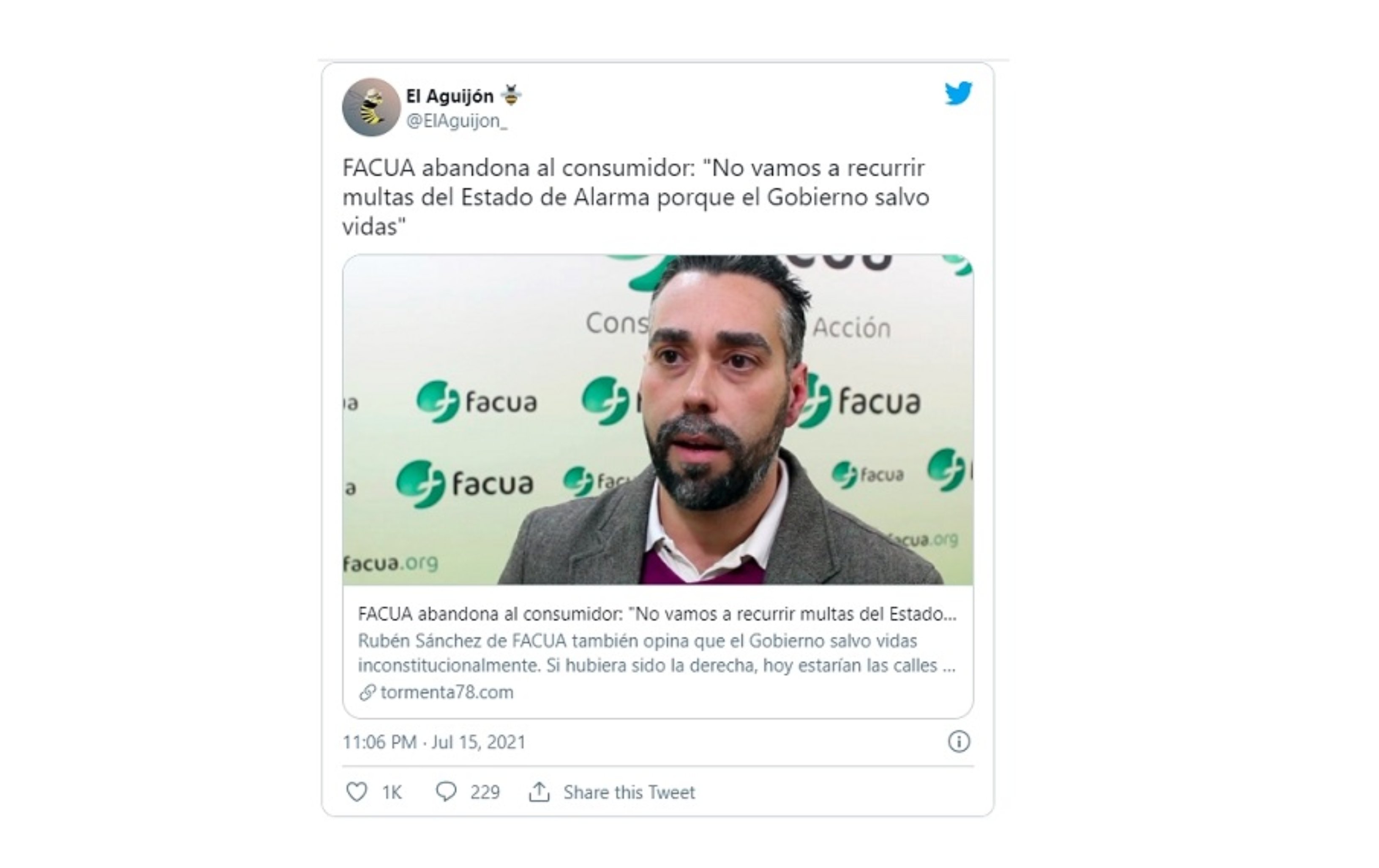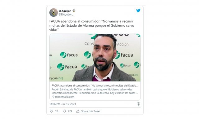 Rubén Sánchez, secretario general de la organización de consumidores FACUA, está de acuerdo con el Gobierno Sánchez, Rubén y opina que el ejecutivo salvó vidas durante la pandemia y por eso la organización que lidera no recurrirá las multas del Estado de Alarma.