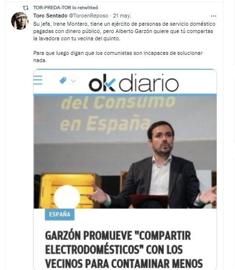 Ahora, el Ministerio de Consumo de Alberto Garzón aboga por «compartir el uso de electrodomésticos» en las comunidades de vecinos para reducir la contaminación. Así se concluyen en el informe Sostenibilidad del consumo en España. Evaluación del impacto ambiental asociado a los patrones de consumo mediante análisis del ciclo de vida.