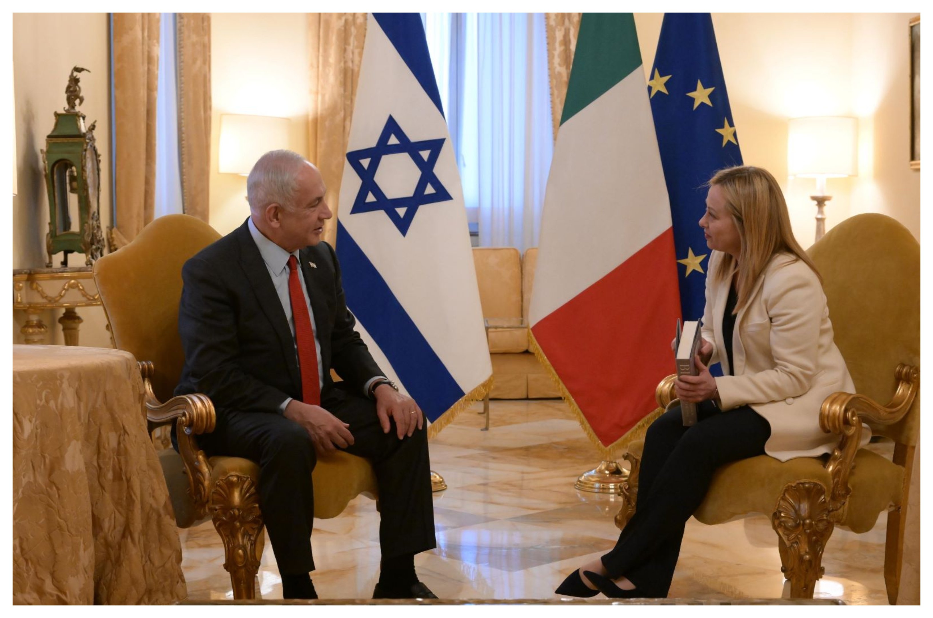 Pero no es tonto. El primer ministro israelí ha visitado Roma... y Giorgia Meloni, primer ministro de Italia le ha recibido con todos los honores: natural.