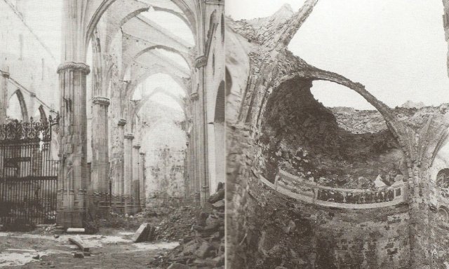 A la persecución de las personas, los socialistas y sus cómplices de izquierdas añadieron la persecución de las cosas sagradas. El sectarismo antirreligioso del PSOE no se detuvo ante nada, y los socialistas y sus cómplices destruyeron la mayor parte del rico patrimonio artístico de Alcalá de Henares. Su barbarie la han tapado posteriormente con la mentira y siguen manteniendo la patraña inventada por Manuel Azaña y Antonio Machado de “la certera puntería fascista contra el sepulcro del Cardenal Cisneros”, a pesar de que la documentada tesis doctoral de Josué Llul Peñalba, publicada por la Universidad de Alcalá, haya desmontado tan torpe mentira. Ya vimos en un artículo anterior cómo se empleó gasolina para quemar la iglesia Magistral, donde entonces se encontraba el sepulcro del Cardenal Cisneros y sobre el que se desplomó la bóveda de la iglesia.