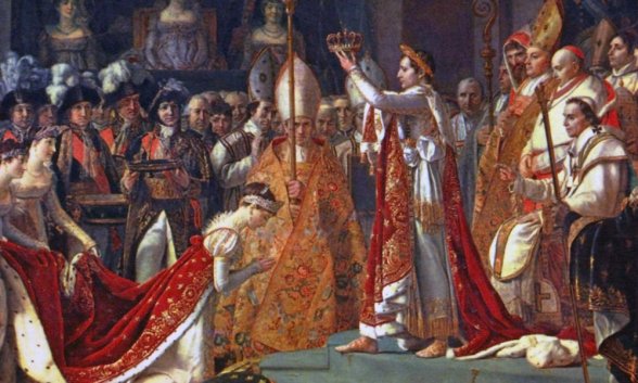 En contra de la tradición, el Emperador no sería coronado por el Romano Pontífice, sino que Napoleón se autocoronaría en presencia del papa y a continuación él mismo coronaría a Josefina Beauharnais (1761-1814) de rodillas