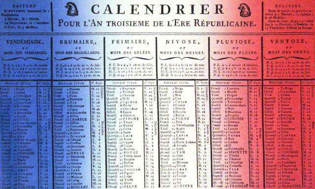 Los meses revolucionarios siguen teniendo treinta días, pero no cuatro semanas, sino tres décadas y el día festivo es el décimo, que ya dijimos que se llamaba el décadi. Y cuando el obispo Gregoire, un clérigo que dejó de servir a Cristo para servir al poder político y medrar, le pregunto a Romme, que era uno de sus promotores, para qué servía ese calendario, este le contestó: