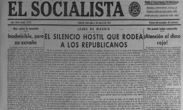Y, por fin, para que no hubiese ninguna duda de sus pretensiones, el editorial de El Socialista, de ese mismo día, acababa con este párrafo: “¿Concordia? No ¡Guerra de clases! Odio a muerte a la burguesía criminal. ¿Concordia? Sí, pero entre los proletarios de todas las ideas que quieran salvarse y librar a España del ludibrio. Pase lo que pase, ¡atención al disco rojo!”.