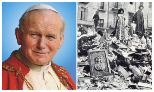 La valentía de San Juan Pablo II para proclamar la verdad de lo ocurrido contrasta con la cobarde actitud de quienes pretendieron ocultar con el silencio una de las mayores gestas de la Iglesia católica de todos los tiempos, como fue la entrega de la vida en defensa de la fe que hicieron muchos miles de católicos en España.