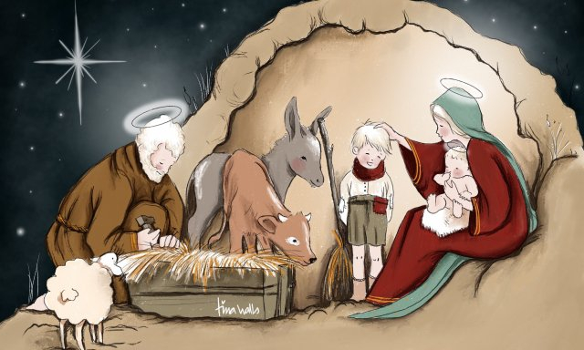 Contaba en aquel artículo que cuando María y José pedían alojamiento en Belén, un niño fue testigo del portazo que les dio el posadero y que fue este niño el que les condujo a una gruta, donde su padre guardaba las ovejas y donde entonces solo había un buey y una mula. A partir de este momento el niño se encariñó con la Virgen y María con él y se convirtió en “el niño de los recados de la Virgen”, al que pasados los años Jesús y María se volverán a encontrar cuando acudan a las bodas de Caná. Y este mismo niño es el que el que según Tina Walls llevó abundante leña, toda la que podía cargar, con la que se calentó la gruta de Belén.