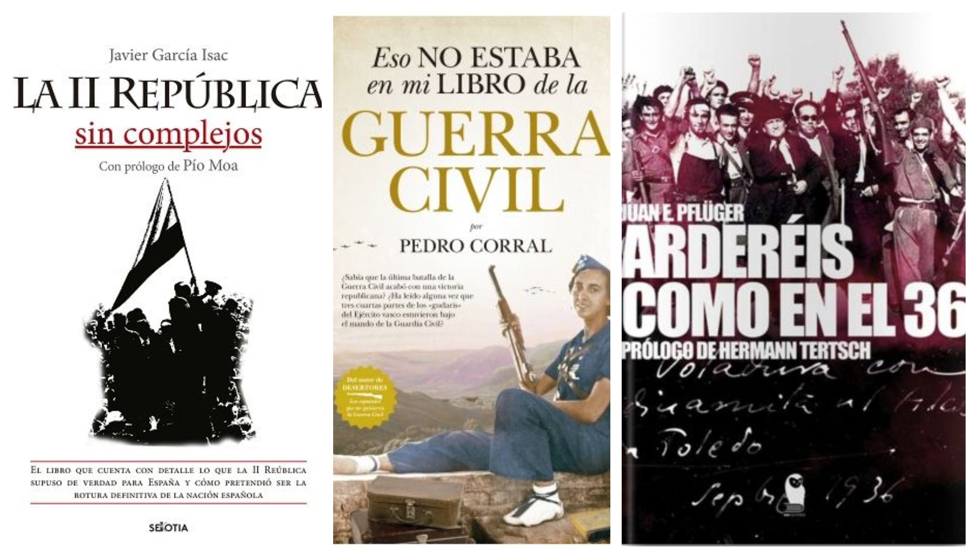 Arderéis como en 36 (SND) de Juan E. Pflüger. Este libro muestra de forma patente las consecuencias de la Ley de Memoria Histórica, lo que ha supuesto despertar los fantasmas y sus gritos, la venganza y no la justicia, las hordas de la izquierda de la que se considera habilitada moralmente hoy para actuar como lo hizo antes de 1936 y luego durante la guerra. Un libro que debería remover la conciencia de quienes crearon y permiten hoy que esta ley sea como es.
