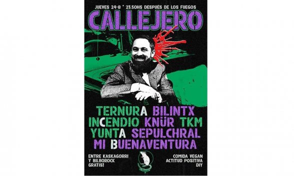 Este cartel difundiendo fiestas de Bilbao con Santiago Abascal recibiendo un tiro en la nuca lo vamos a denunciar de modo inmediato.