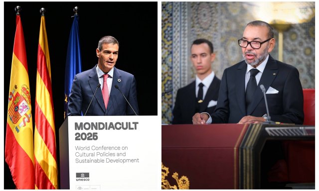 Respecto a España, no se sabe qué cadáver de Pedro Sánchez, guarda Mohamed VI en el armario pero lo cierto es que Sánchez cede una y otra vez ante quien es el peor enemigo actual de España: cedió en el Sáhara, cede en el narcotráfico y no defiende a Ceuta y Melilla.... ni a Canarias.