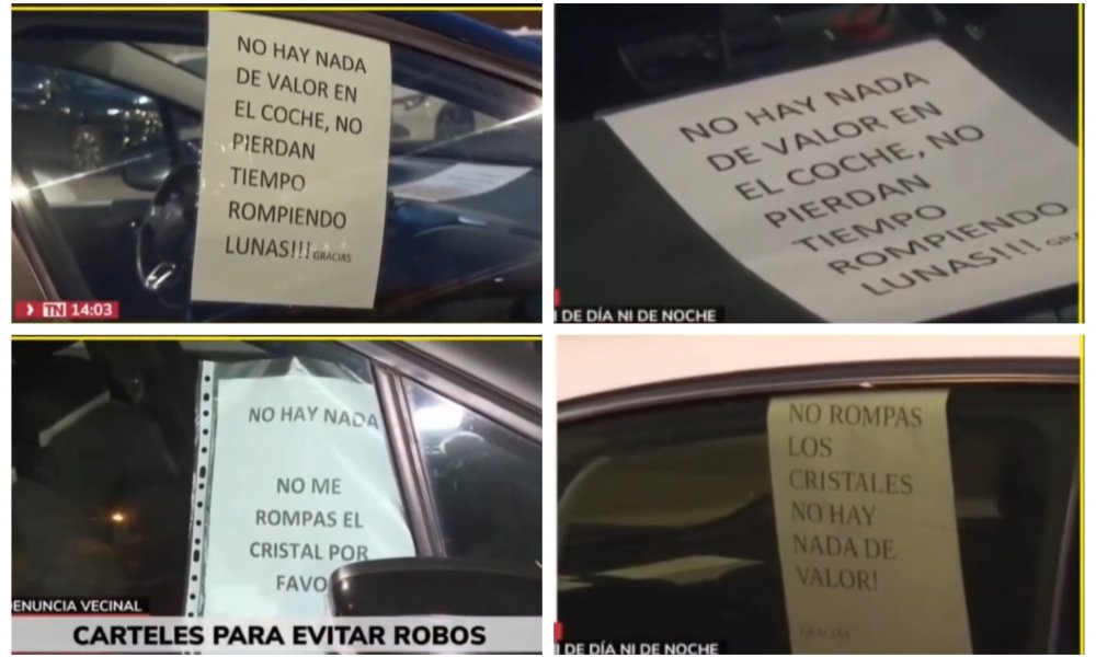 Puente de Vallecas (Madrid). Vecinos dejando carteles en sus propios coches: “Por favor, no nos robéis, no tenemos nada de valor”.