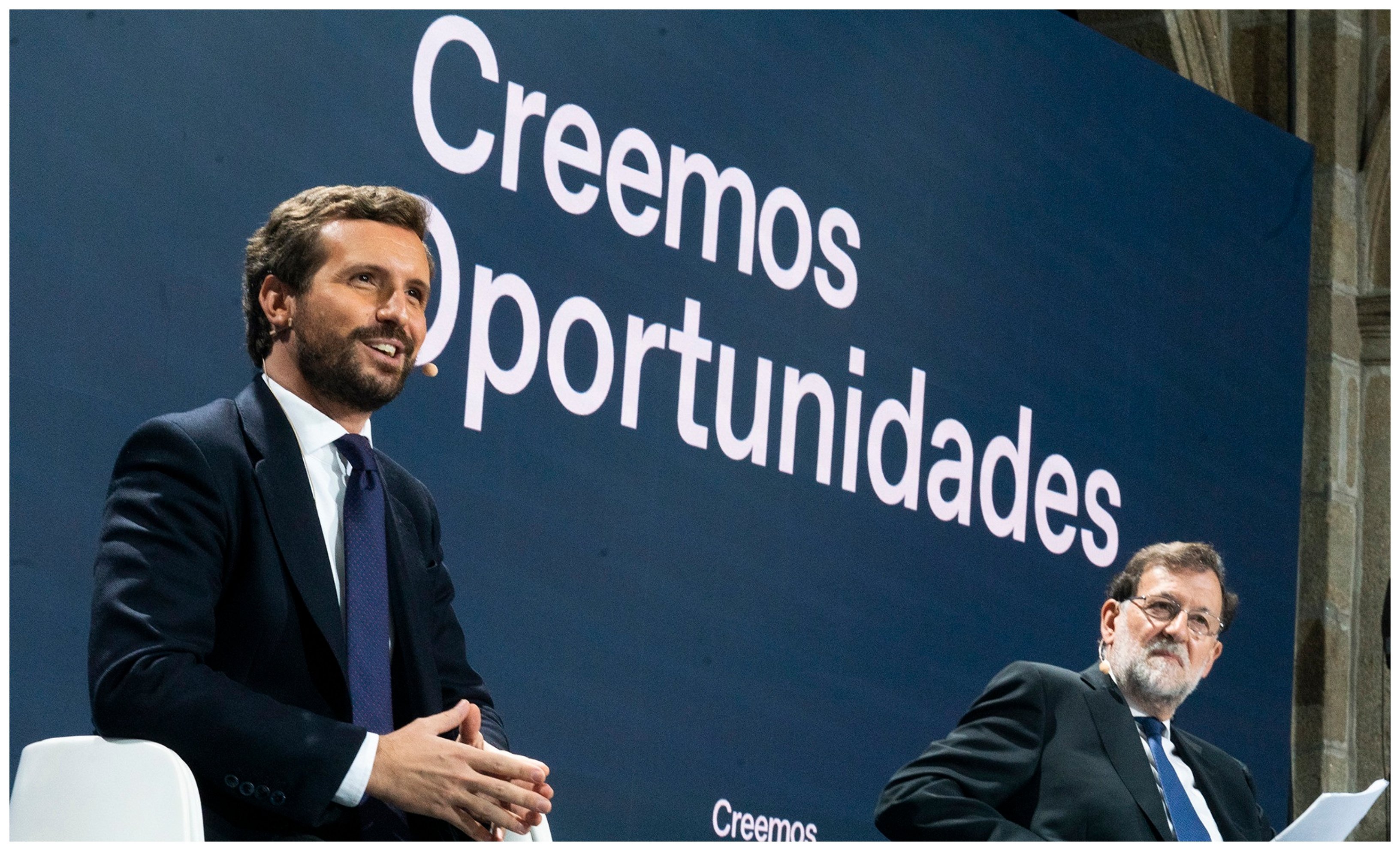 Convención del PP. Toda una semana por delante Pablo Casado inaugura la reunión con Mariano Rajoy. Todo delicadeza, el expresidente del Gobierno concluye su parlamento con la afirmación de que, al igual que él arregló el desastre Zapatero, “supongo que serás tú quien tendrás que arreglar” el desastre Sánchez.