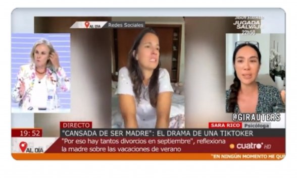 El programa 'Cuatro al día' debatía sobre el estrés que genera la maternidad, a raíz del vídeo de una tik toker que se manifestaba cansada de ser madre, porque había pasado las vacaciones con sus tres hijos, su marido y su perro, lo que le había generado mucho estrés.