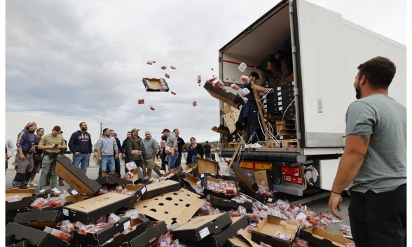 En cualquier caso, decenas de camiones españoles han quedado bloqueados, y algunos, cargados de frutas y hortalizas, ante la pasividad de la policía francesa y del presidente del gobierno español, Pedro Sánchez, incapaz de protestar ante su amigo, el francés Emmanuel Macron. Esta vez ni se han dado un besito.