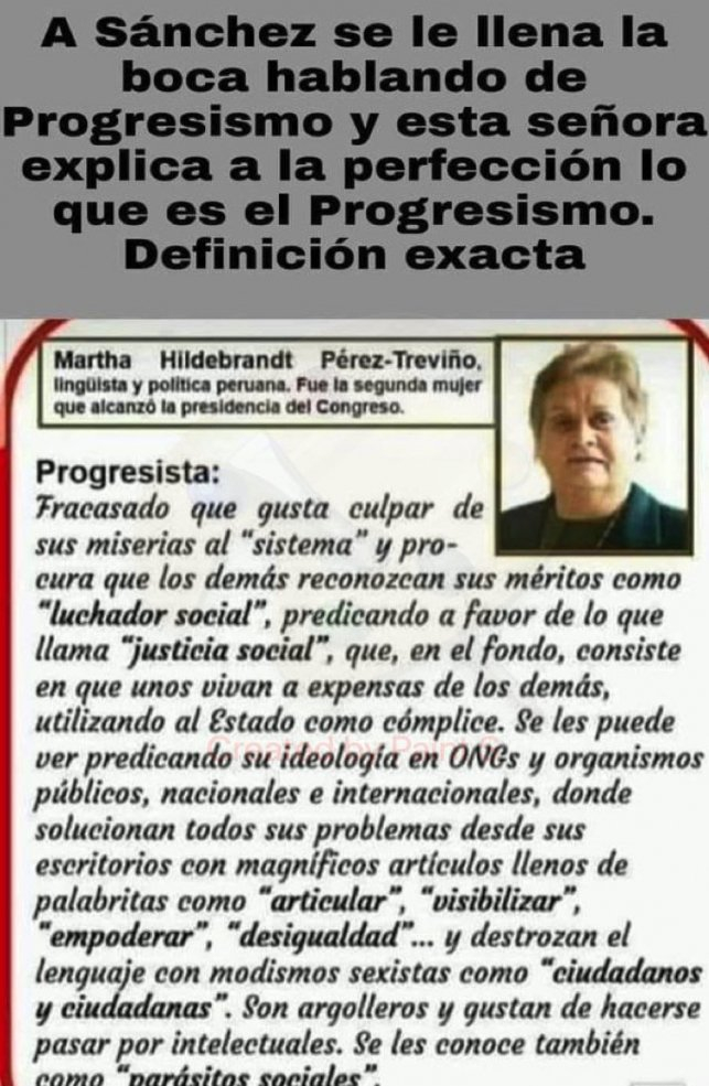 Opinión ¿Qué es el progresismo? En Hispanidad lo hemos definido como "abajo los curas y arriba las faldas" pero por internet corren otras variantes. Eulogio López 20/04/22 14:10 Imagen del progresismo Y no hacen falta comentarios. La verdad está en los memes. Opinión Enormes minucias por Eulogio López Alcalde Almeida, presidenta Ayuso: no todo puede ser publicidad Eulogio López Hacienda recauda cada vez más, pero los servicios públicos son cada vez peores: esto marcha Pablo Ferrer El buen gestor no es el que reduce gastos sino el que aumenta ingresos Eulogio López Argumentos ¡Feliz Navidad!, valientes “¡Qué te los lleves a tu casa! No es racismo, primero estamos los españoles, que esta gente viene sin papeles”: una vecina de Badalona, al podemita Pablo Fernández Hispanidad Irene venía "llorada de casa", pero ya no: Alvise le dice que ha "ascendido políticamente, hasta casándote con tu exjefe de partido"... y a la eurodiputada podemita se le saltan las lágrimas Hispanidad Al cierre del Mercado 2024, un año para olvidar, tanto en Tubacex como en Tubos Reunidos por Ana Sánchez Arjona Artículos anteriores Entrevistas “Europa lleva mucho tiempo poniendo aranceles y cortapisas a productos y compañías americanas (y europeas)” por Ana Sánchez Arjona Artículos anteriores La Casa Blanca Nueva campaña de calumnias contra Trump: Vanity Fair manipula una entrevista a su jefa de gabinete, Susie Wiles por Ignacio Aguirre Artículos anteriores Cartas al director Extremadura y la dura extrema realidad El Gobierno de España no sólo profana sino que también perpetra ilegalidades con el Valle de los Caídos Sociedad 'Crowdfunding'. Piden fondos para culminar las obras de la nueva parroquia de San Francisco de Sales, en Parla Este (Madrid) por Redacción Artículos anteriores La sorprendente historia de Sor Patrocinio "Las llagas de la monja eran ciertas" Minucias visuales Almería. Pozos de La Lagarta y Cantavieja, donde los republicanos asesinaron a 152 personas. Suma y sigue... La Resistencia por Javier Paredes Artículos anteriores Fuego Poeta pasmado por J. R. Pablos Artículos anteriores El Reinado Eucarístico Occidente debería ir a la guerra en defensa de sus hermanos de Siria e Irak. Por abandonarles, sobrevendrá una guerra peor. Los atentados se sucederán en Europa… Lo más leído La Noche Buena de 1936 en la cárcel de Porlier, en Madrid Católicos amodorraditos. La Sexta utiliza a Cristina López Schlichting Lamentable discurso de Navidad de Felipe VI. Majestad: en democracia, y en tiranía, las ideas propias siempre son dogmas La historia del burro