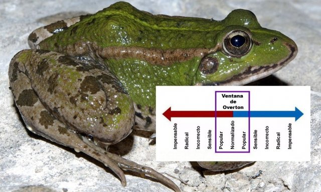 Una conocida alegoría utilizada para alertarnos sobre graves imposiciones sociales nos enseña que, para cocer una rana viva, no hay que meterla en una cazuela con el agua ya hirviendo, porque reaccionaría saltando fuera, sino que habrá que introducirla en agua fría y luego ir calentándola hasta llegar a un punto en que la rana carezca de fuerzas para saltar y escapar. Este cuentecillo guarda similitud con la teoría de la ventana de Overton, que también explica los pasos graduales que han de darse previamente en una sociedad para introducir algo contrario a los valores imperantes en ese momento y que, de presentarse directamente en toda su crudeza, sería frontalmente rechazado. Por eso, al igual que en el caso de la rana, también se necesita ir calentando poco a poco el clima de aceptación social mediante propuestas y argumentos más suaves, e ir subiendo en intensidad hasta el grado en que la propuesta final suene «normalizada».