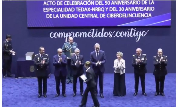 Observen cómo los familiares de los Tédax-NRBQ caídos en acto de servicio que han recibido un reconocimiento de manos del Rey no han saludado al ministro del Interior, Fernando Grande-Marlaska.