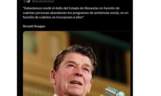 Este meme circula por Internet. Recuerda una frase de Ronald Reagan, el último liberal, quien recuerda lo que debería ser una tautología y hoy parece un grave pecado: que el mejor Estado del Bienestar es el que no existe...