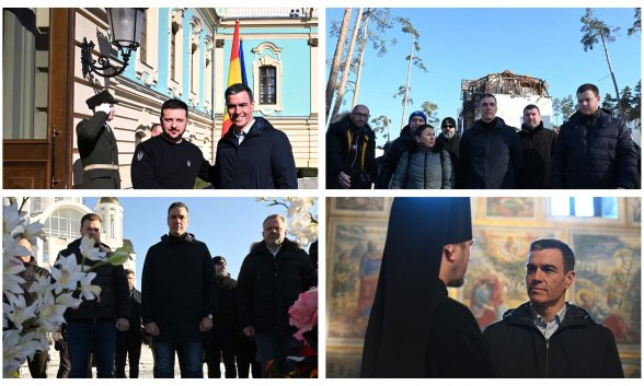 Cinco entrevistas en tres horas, tras un viaje a Ucrania, primera línea de fuego, a Fuenlabrada, segunda trinchera, para compartir su tiempo con el pueblo, inaugurar un par de pertes, profundizar -repetir- en otros dos y tras el maratoniano primer acto de campaña como futuro presidente de turno de la Unión Europea, tarea que ha comenzado con cinco meses de adelanto sobre el horario previsto: el Falcon echa humo.