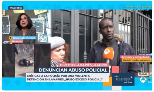 El activista podemita Serigné Mbayé conectó en directo con el programa se Susana Grisso para comentar el caso de supuesto abuso policial en Lavapiés. Durante su intervención, el actual Secretario de Antirracismo de Podemos, acusó a la colaboradora de 'Espejo Público', Beatriz de Vicente de "racista" por hablar de "gente de color": “Fórmate un poco antes de estar en un plató”.