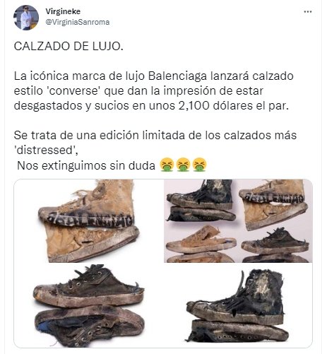 El modelo pertenece a la colección Paris High Top Full Destroyed. Para entendernos, se trata de unas deportivas sucias y rotas que Balenciaga ha agotado a un precio de 1.450 euros el par. Es el triunfo del feísmo.