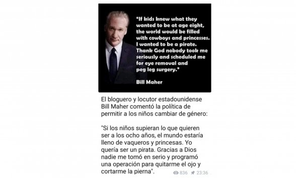 Transexualidad: "Si los niños supieran lo que quieren ser a los ocho años... Yo quería ser un pirata. Gracias a Dios nadie programó una operación para cortarme una pierna"