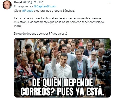 Desde que Pedro Sánchez tuvo la ‘brillante’ idea de adelantar las elecciones generales al 23-J, fastidiando las vacaciones a millones de españoles y cabreando a los carteros, ha cobrado especial atención el voto por correo. De hecho, los sindicatos estiman que se podría llegar a tres millones de votos por correo... que dependerán del ‘gran gestor’ de Correos y amigo de Sánchez, Juan Manuel Serrano, lo que lleva a preguntarse cada vez con más preocupación: ¿habrá fraude electoral?