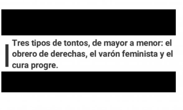 Opinión Tres tipos de tontos, de mayor a menos: el obrero de derechas, el varón feminista y el cura progre Eulogio López 16/02/22 12:56 https://youtu.be/zTpVwGfdoDc Los tres abundan mucho en este siglo. Opinión Enormes minucias por Eulogio López El buen gestor no es el que reduce gastos sino el que aumenta ingresos Eulogio López Óscar López: el padre madrileño paga por la por la escuela pública y también por la concertada: ¿no será al revés? Eulogio López Putin llama "cerdos" a los europeos pero salva a Trump Eulogio López Argumentos Irene venía "llorada de casa", pero ya no: Alvise le dice que ha "ascendido políticamente, hasta casándote con tu exjefe de partido"... y a la eurodiputada podemita se le saltan las lágrimas Hispanidad "No nos renta este gobierno... Pedro Sánchez nos ROMPE las piernas y luego nos da un ibuprofeno": mensaje de un joven para el presidente "Los catalanes recibirán en donaciones encubiertas del Estado 9.500 euros por habitante, mientras que cada asturiano recibirá sólo 577" Hispanidad Al cierre del Mercado 2024, un año para olvidar, tanto en Tubacex como en Tubos Reunidos por Ana Sánchez Arjona Artículos anteriores Entrevistas “Europa lleva mucho tiempo poniendo aranceles y cortapisas a productos y compañías americanas (y europeas)” por Ana Sánchez Arjona Artículos anteriores La Casa Blanca Nueva campaña de calumnias contra Trump: Vanity Fair manipula una entrevista a su jefa de gabinete, Susie Wiles por Ignacio Aguirre Artículos anteriores Cartas al director Hemos sido creados para escribir la historia que Dios quiere Enrique Ernesto Shaw, un empresario santo Sociedad 'Crowdfunding'. Piden fondos para culminar las obras de la nueva parroquia de San Francisco de Sales, en Parla Este (Madrid) por Redacción Artículos anteriores La sorprendente historia de Sor Patrocinio "Las llagas de la monja eran ciertas" Minucias visuales Almería. Pozos de La Lagarta y Cantavieja, donde los republicanos asesinaron a 152 personas. Suma y sigue... La Resistencia por Javier Paredes Artículos anteriores Fuego Poeta pasmado por J. R. Pablos Artículos anteriores El Reinado Eucarístico Todo lo que suceda será para vuestro bien, aún las más grandes catástrofes naturales y las mayores calamidades afectivas. Lo más leído Almería. Pozos de La Lagarta y Cantavieja, donde los republicanos asesinaron a 152 personas. Suma y sigue... Memes. Suspiros de España Memes. Cuando todo empezó "Hay vida más allá de Nvidia, de los bancos, de Trump o de los tipos de interés"