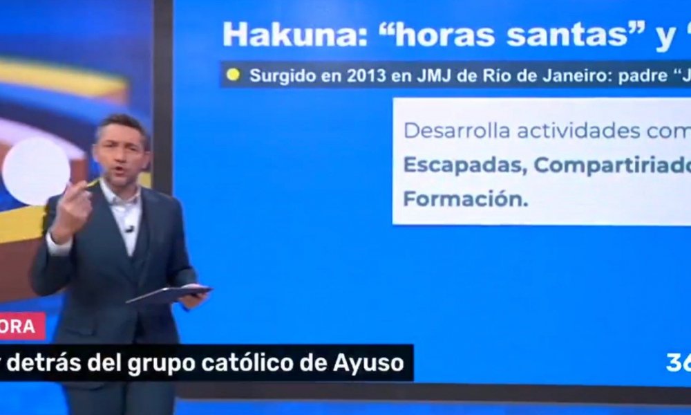 Me dirijo a ustedes en mi calidad de espectador habitual de la televisión pública para expresar mi profunda indignación por los comentarios emitidos en programas de TVE como Directo al Grano y Mañaneros 360 contra el grupo musical católico Hakuna, durante su cobertura de la actuación navideña en la Puerta del Sol de Madrid. Presentadores como Sarah Santaolalla y Javier Ruiz calificaron al grupo de "secta", "ultras", "pijos con la vida resuelta" y lo asociaron a un supuesto plan ideológico vinculado a Isabel Díaz Ayuso, lo que constituye una afrenta grave a la pluralidad, la libertad religiosa y el derecho a la información objetiva que debe garantizar una cadena pública.